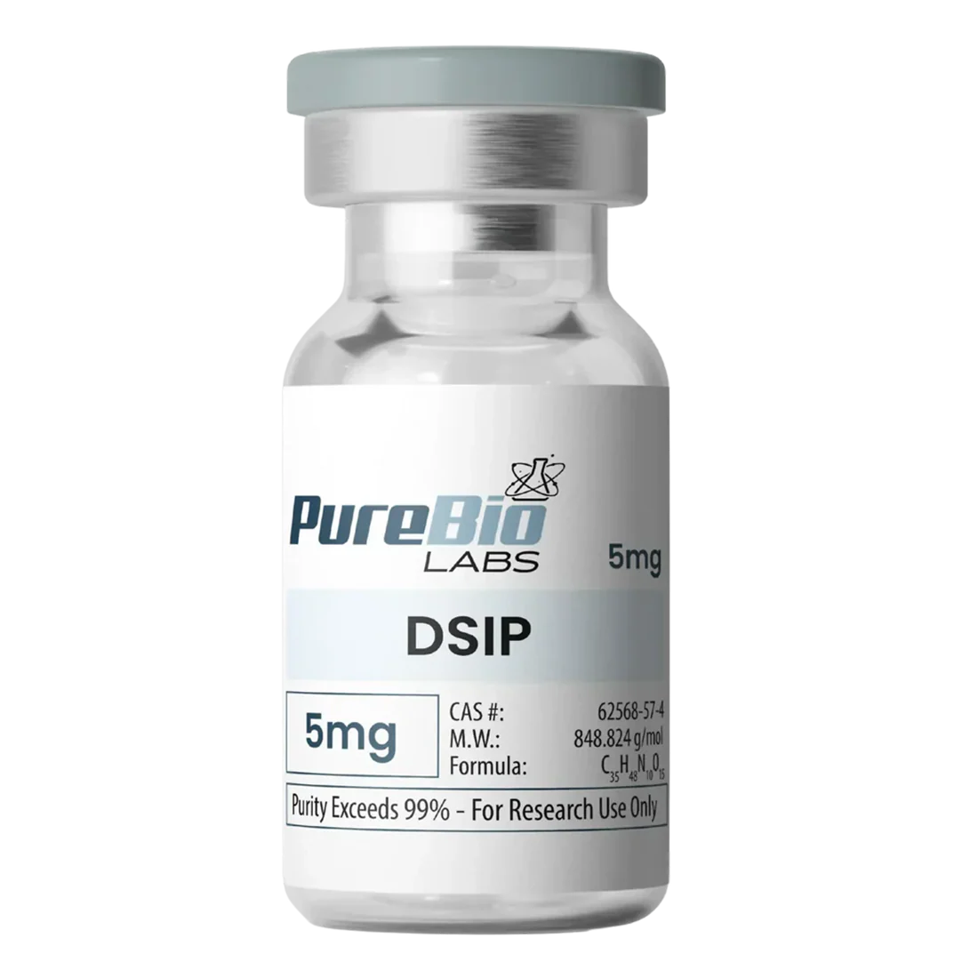 Pure Bio Labs DSIP is a high-purity peptide offered in a 5mg lyophilized powder format, intended strictly for laboratory research and development purposes. Manufactured to exceed 99% purity and tested using both HPLC and LC-MS protocols, this peptide is supplied in a sterile, sealed vial to ensure stability and integrity.