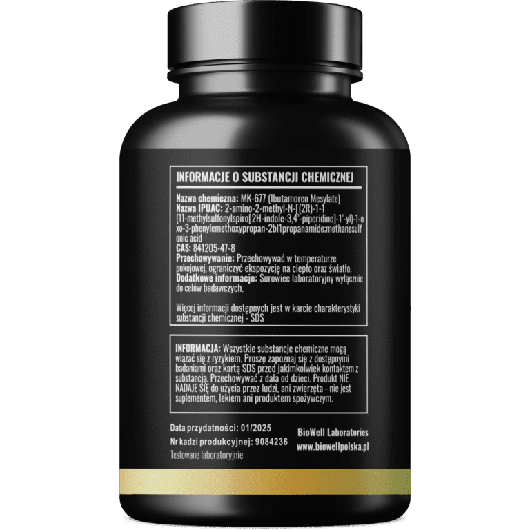 MK-677 od BioWell Labs is a chemical substance intended for research. BioWell Labs supplies its product with independent concentration tests, so you can be sure that you will receive a 100% pure product.